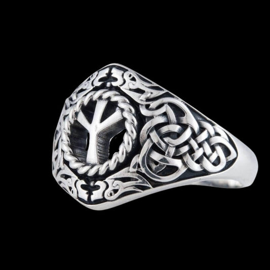 Handcrafted Helm of Awe Symbol Runes Ornament Sterling Silver Ring