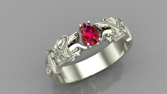 Handcrafted Norse Wolf Fenrir Red Gem Sterling Silver Ring