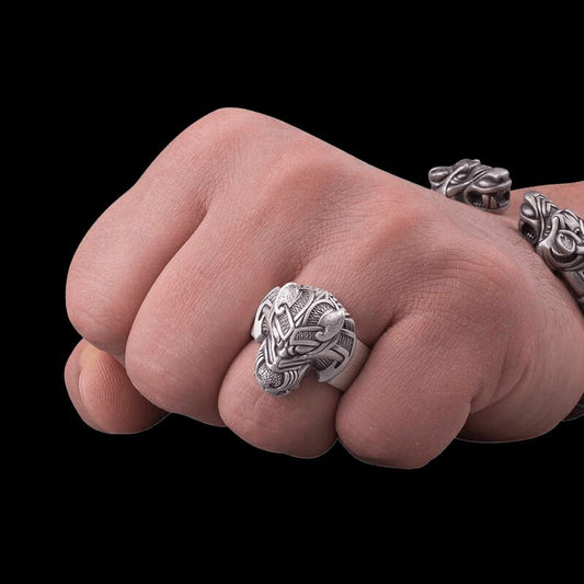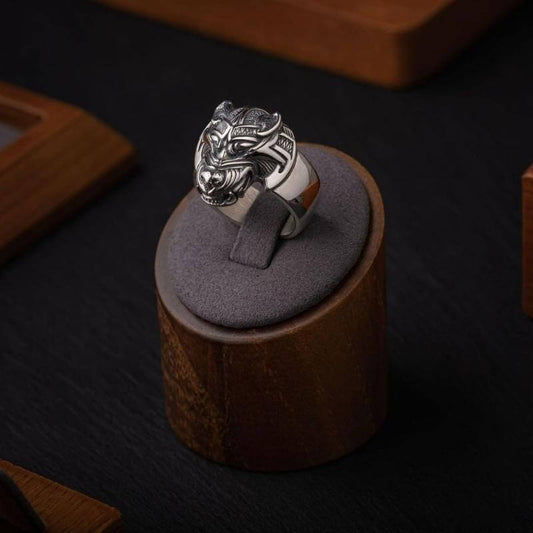 Handcrafted Fenrir Ring with Viking Ornament Sterling Silver Ring