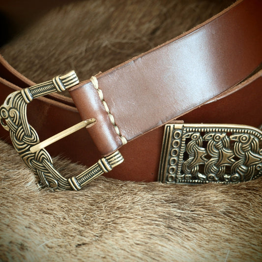 Handcrafted Viking Belt with Birka Buckle - Bronze