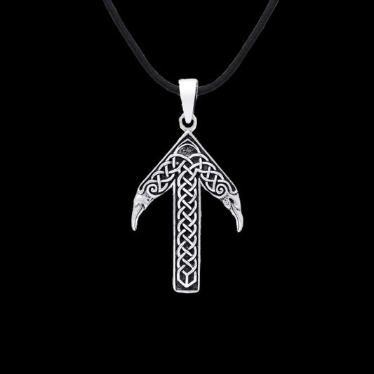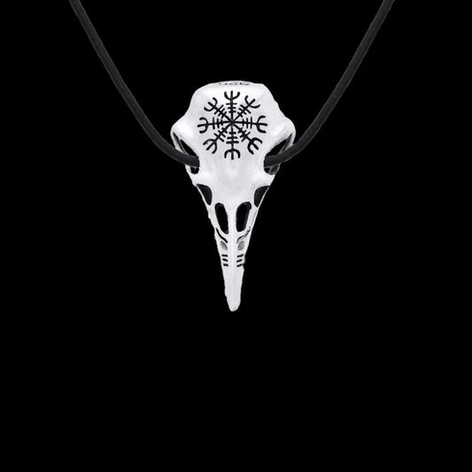 Raven Skull Aegishjalmur Sterling Silver Pendant