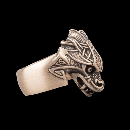 Handcrafted Jörmungandr Midgard Serpent Bronze Ring