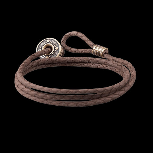 Handcrafted Hail Odin Bronze Bead Leather Bracelet