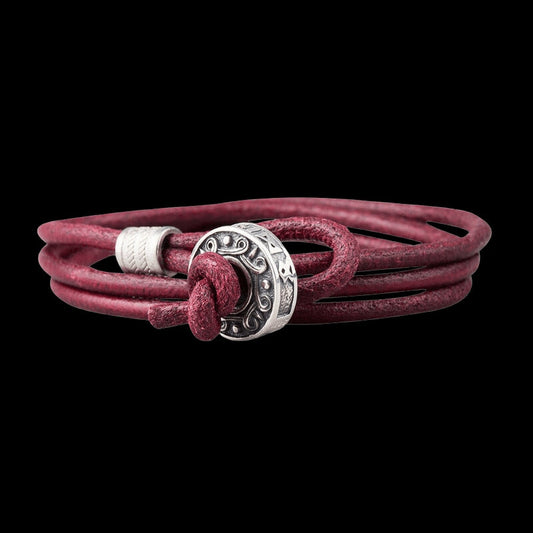 Handcrafted Hail Odin Silver Bead Leather Bracelet