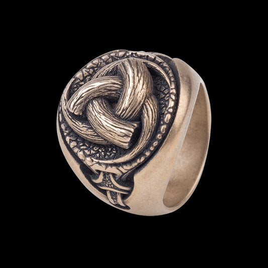 Handcrafted Odin with Valknut Symbol Bronze Ring