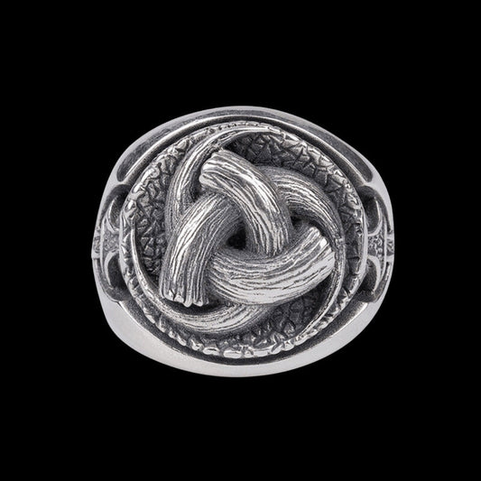 Handcrafted Odin's Skull Valknut Ruthenium Plated Sterling Silver Ring