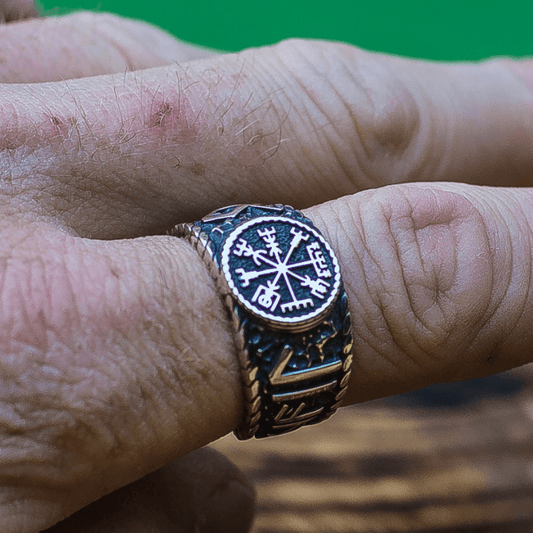 Handcrafted Vegvisir Symbol Hail Odin Runes Sterling Silver Ring