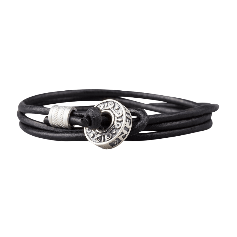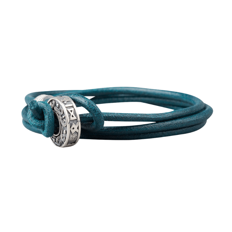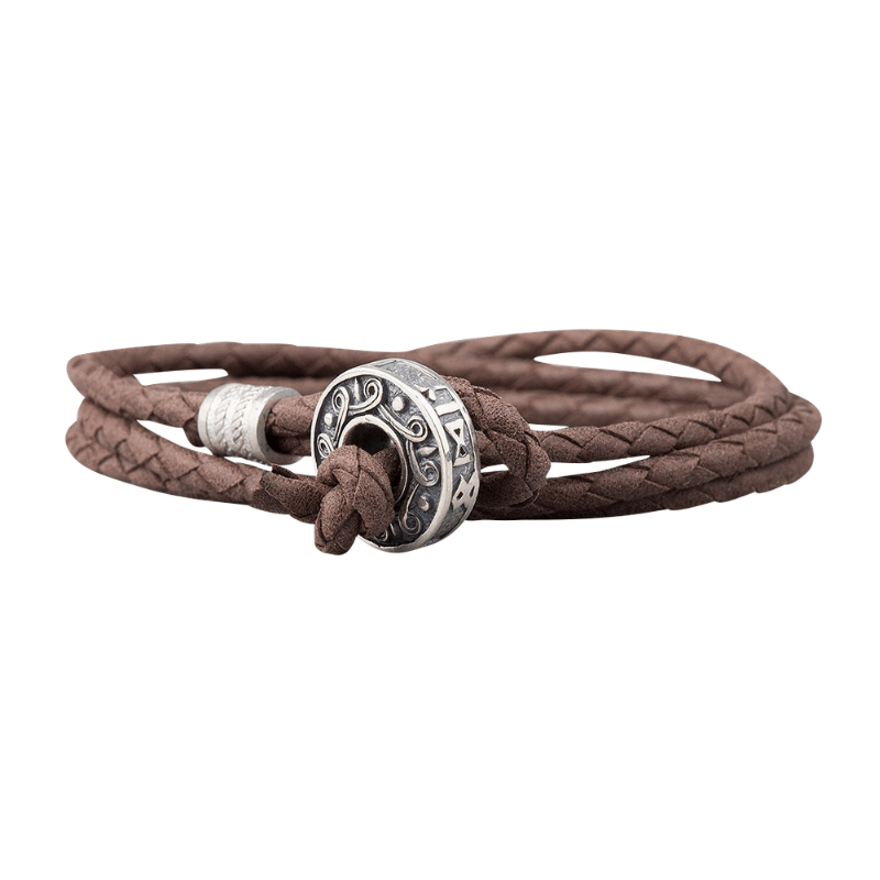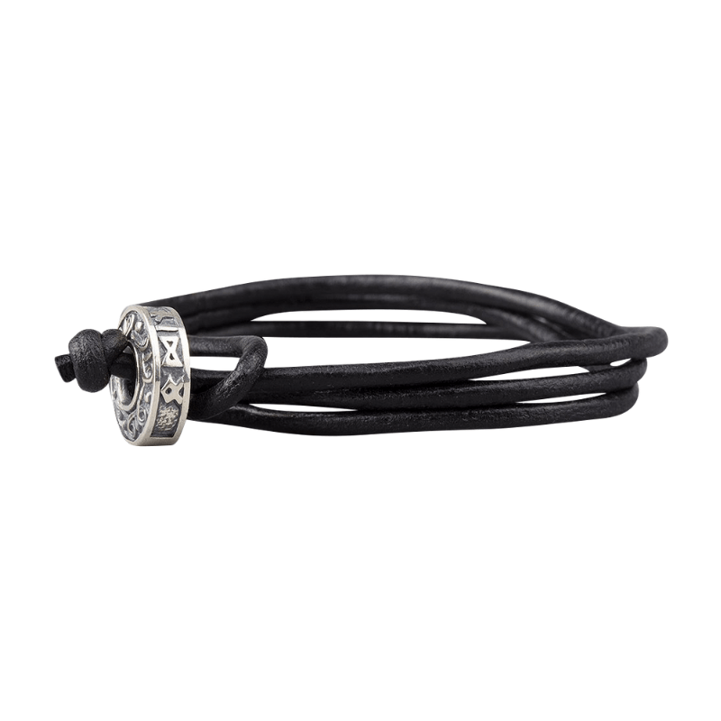 Handcrafted Hail Odin Silver Bead Leather Bracelet