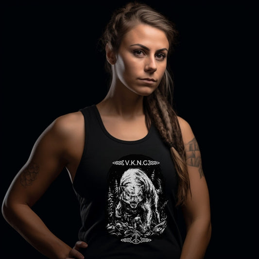 Fenrir, the Giant Wolf: Discover the legend of Fenrir, the fearsome wolf in Norse mythology, through our tank tops. Our blog on Fenrir delves into his story and significance.