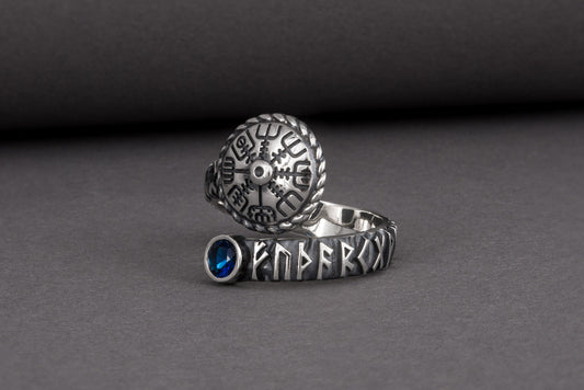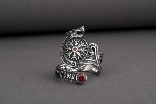 Silver Norse Snake Ring, Handmade Vegvisir Jewelry