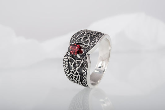 Sterling Silver Viking Ring with Ornament Handcrafted Gemstone Band