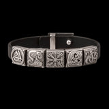 Dieses Wikinger-Stil Lederarmband ist eine kraftvolle Hommage an die Legenden und Kräfte, die die nordische Welt geprägt haben.