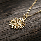Handgefertigter schlanker Goldanhänger „Helm of Awe“.