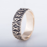 In der nordischen Mythologie sind die Runen mehr als nur Buchstaben; Sie sind starke Symbole mit der Fähigkeit, die Welt zu gestalten. Odin, der verehrte Allvater, ertrug unvorstellbare Schmerzen, um ihre Geheimnisse aufzudecken, und verlieh den Menschen die Macht, ihre eigenen Wege zu gehen. Die Runen des Älteren Futhark, die sorgfältig in diesen Bronzering eingraviert sind, sind ein Beweis für diese göttliche Weisheit und unsere Fähigkeit, sie zu nutzen.