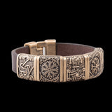 Jedes Symbol ist sorgfältig auf bronzenen oder versilberten Scheiben eingraviert, die vor einem Hintergrund aus hochwertigem italienischem Leder stehen. Dadurch entsteht ein markantes Stück, das die anhaltende Macht der nordischen Götter widerspiegelt. Tragen Sie dieses Armband als Hommage an das bleibende Erbe der Wikinger und die alten Symbole, die weiterhin Kraft und Führung inspirieren.