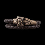 Handgefertigtes Valknut Odins Speer-Bronze-Lederarmband