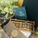 Dieses handgefertigte Holzrune-Set bringt die alte Weisheit der Wikinger in Ihre Hände. Es enthält das vollständige Set von 24 Elder Futhark-Runen sowie Odins Rune, die leere Rune, die Schicksal und das Unbekannte symbolisiert. Jede Rune ist individuell geschnitzt, was einen einzigartigen und authentischen Touch gewährleistet.