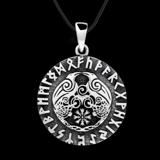Handgefertigter Huginn und Muninn Odins Raben-Amulett-Anhänger aus Sterlingsilber