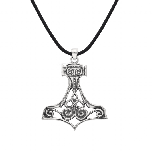 Mjolnir, Thors Hammer, ist das häufigste Symbol, das in der Welt der Wikinger auf Schmuckstücken erscheint. Er taucht häufiger auf als alle anderen Symbole zusammen. Er wurde als Schutzsymbol getragen, da es Thor ist, der Midgard mit seinem mächtigen Hammer beschützt. Während der Konversionszeit wurde er auch als Symbol für die Treue zur alten Religion getragen.