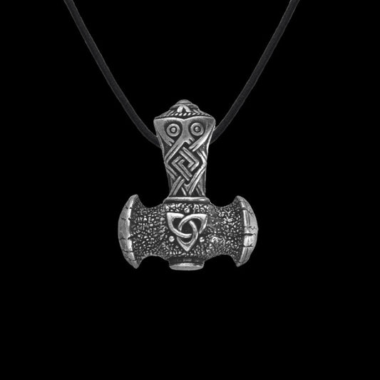 Handgefertigtes Mjolnir-Triquetra-Silberamulett