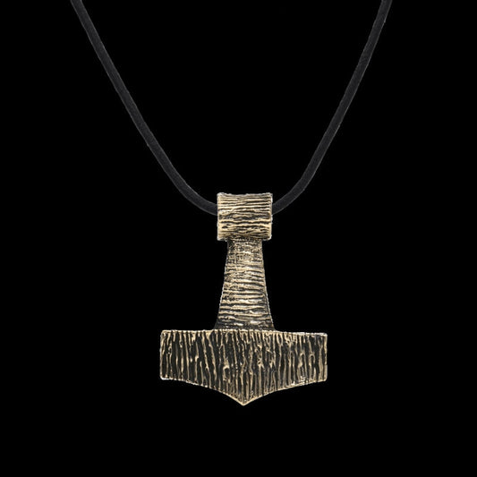 Handgefertigter Anhänger im Thorshammer-Bronze-Mjolnir-Holzstil [Groß]