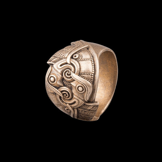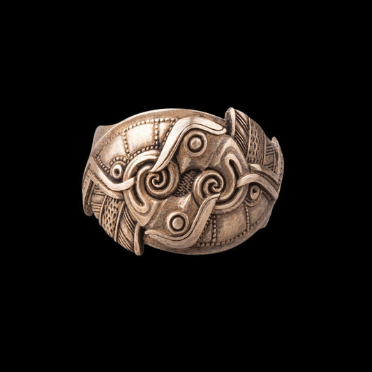 Handgefertigter Bronzering mit Drakkar-Symbol und Mammen-Ornament