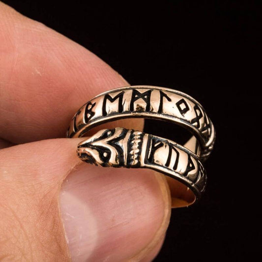 Handgefertigter Ouroboros Elder Futhark Runen-Bronzering