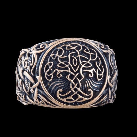 Handgefertigter Bronzering im Mammen-Stil mit Yggdrasil-Symbol