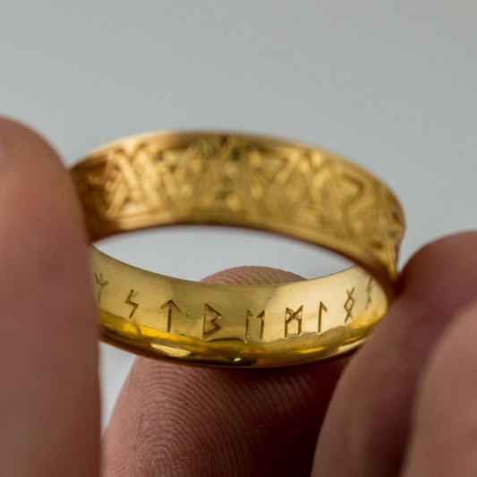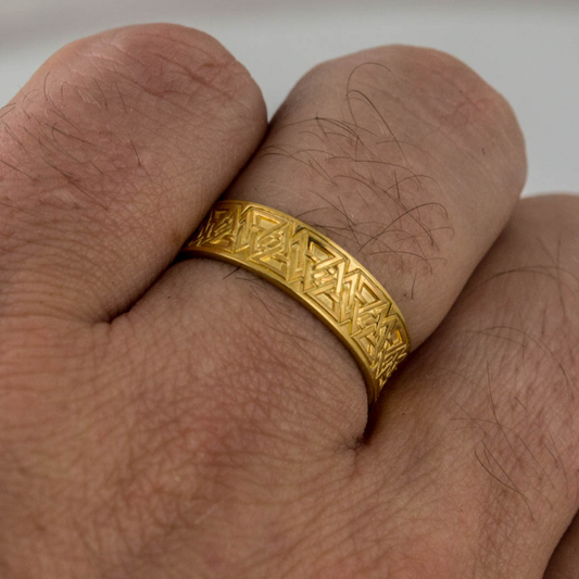 Handgefertigter Ring aus Sterlingsilber mit Ansuz-Rune und nordischem Ornament