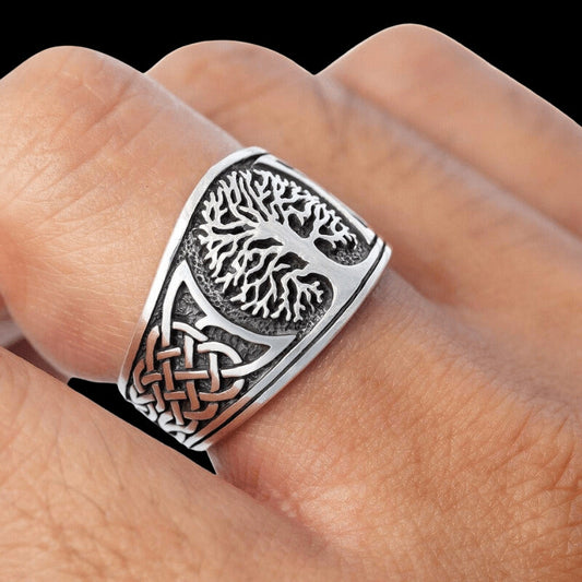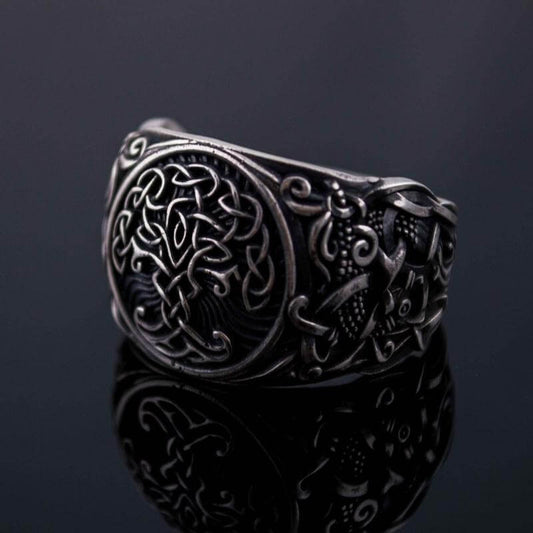 Handgefertigter Yggdrasil: Baum des Lebens Wikinger-Silberring