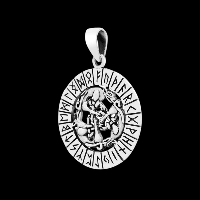 3 Wölfe mit Runen ANHÄNGER AUS 925 STERLINGSILBER