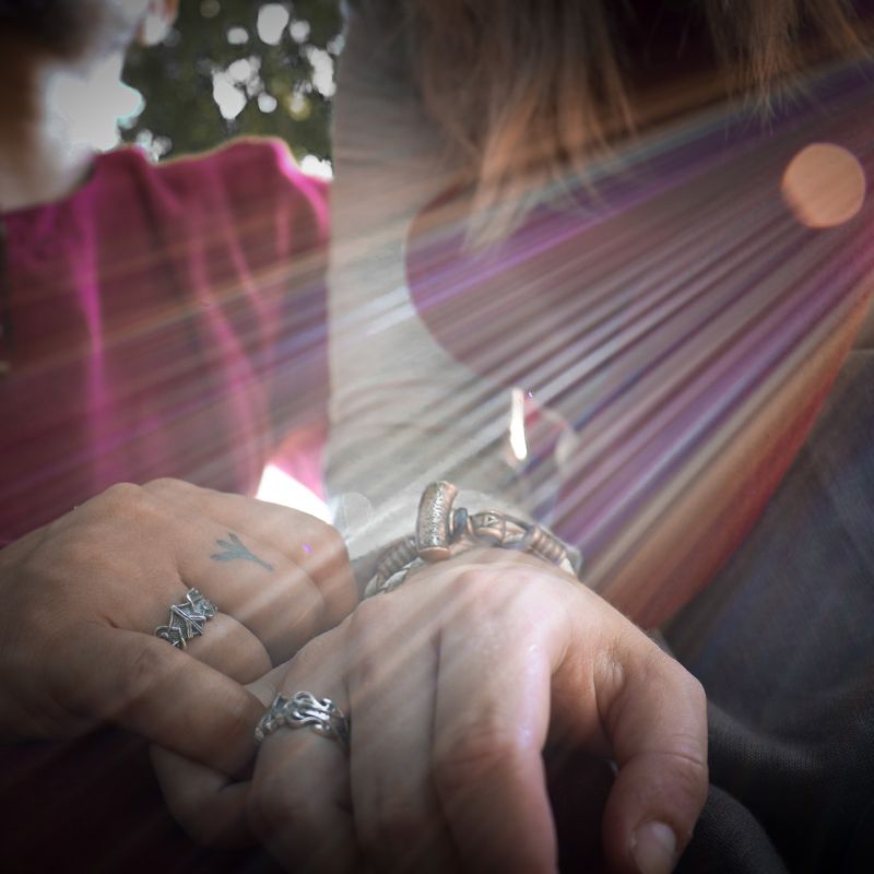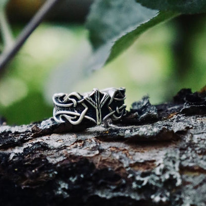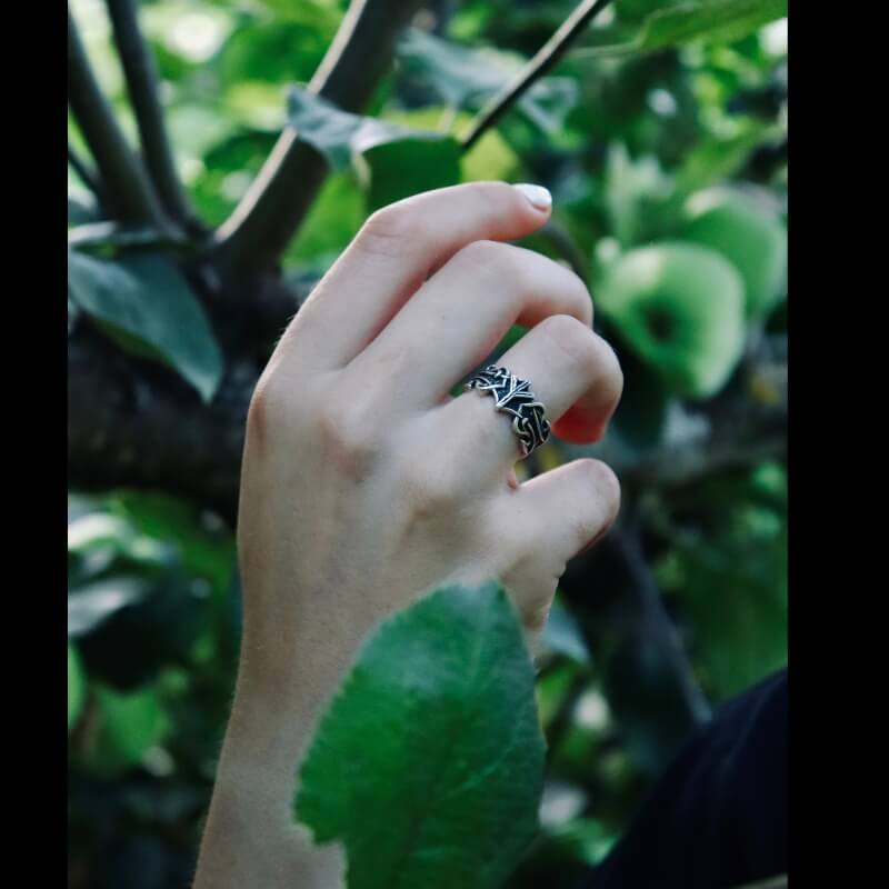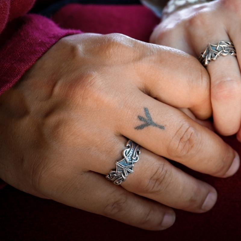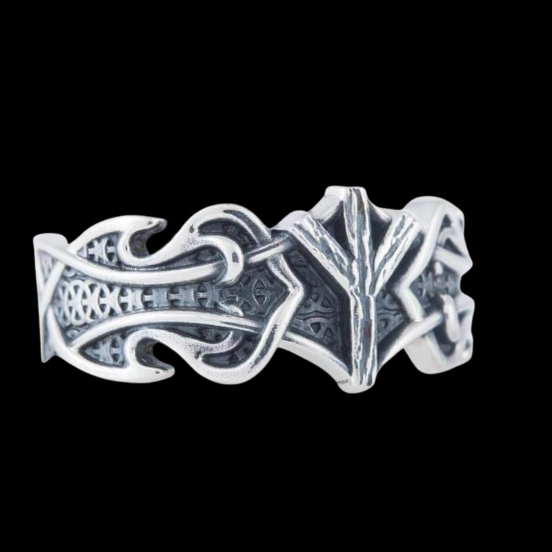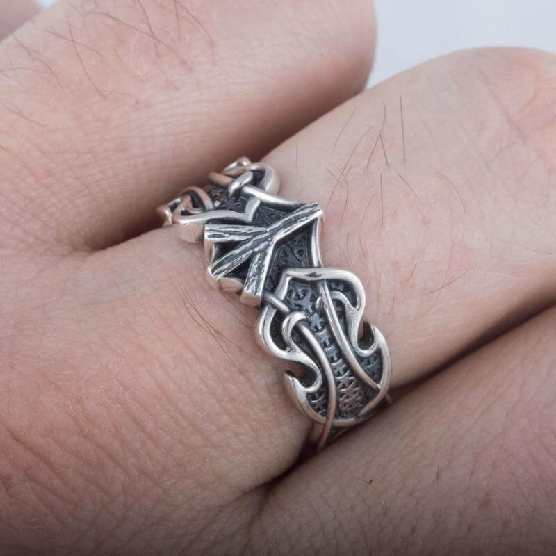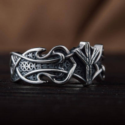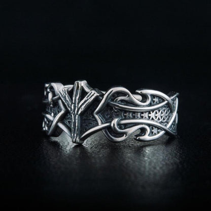 Handgefertigter Ring aus Sterlingsilber mit Algiz-Rune und nordischem Ornament