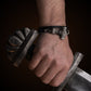 Dieses Armband besteht aus einer geflochtenen Lederschnur, die das Handgelenk umschließt. Es ist nicht nur ein stilvolles Accessoire, sondern auch ein Symbol für Kraft und Schutz.