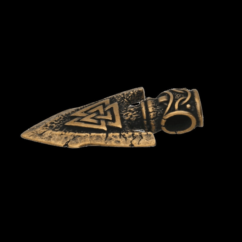 Handgefertigter bronzener Valknut Odins Speer Gungnir