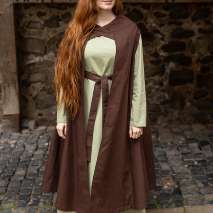 Der Cape Morpheus ist eine vielseitige und leichte Option für diejenigen, die Mobilität und Stil in ihren mittelalterlichen oder fantastischen Kostümen suchen. Das atmungsaktive Baumwollmaterial sorgt für Komfort und macht ihn zur idealen Wahl für aktive Rollen wie Schurken oder Waldläufer.