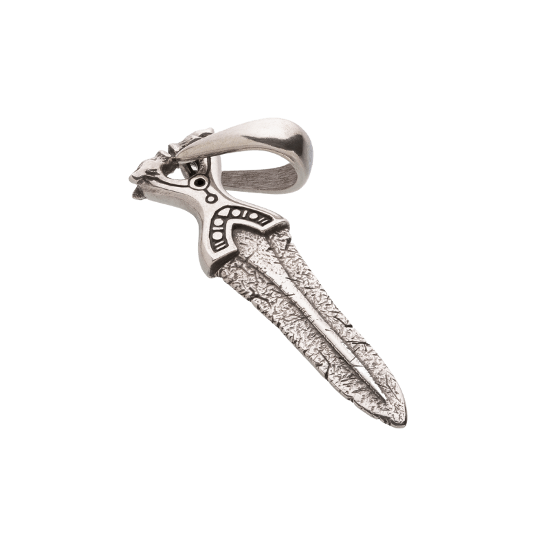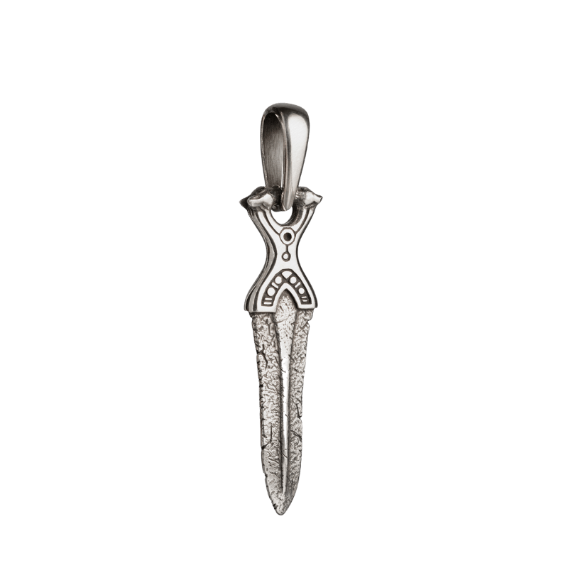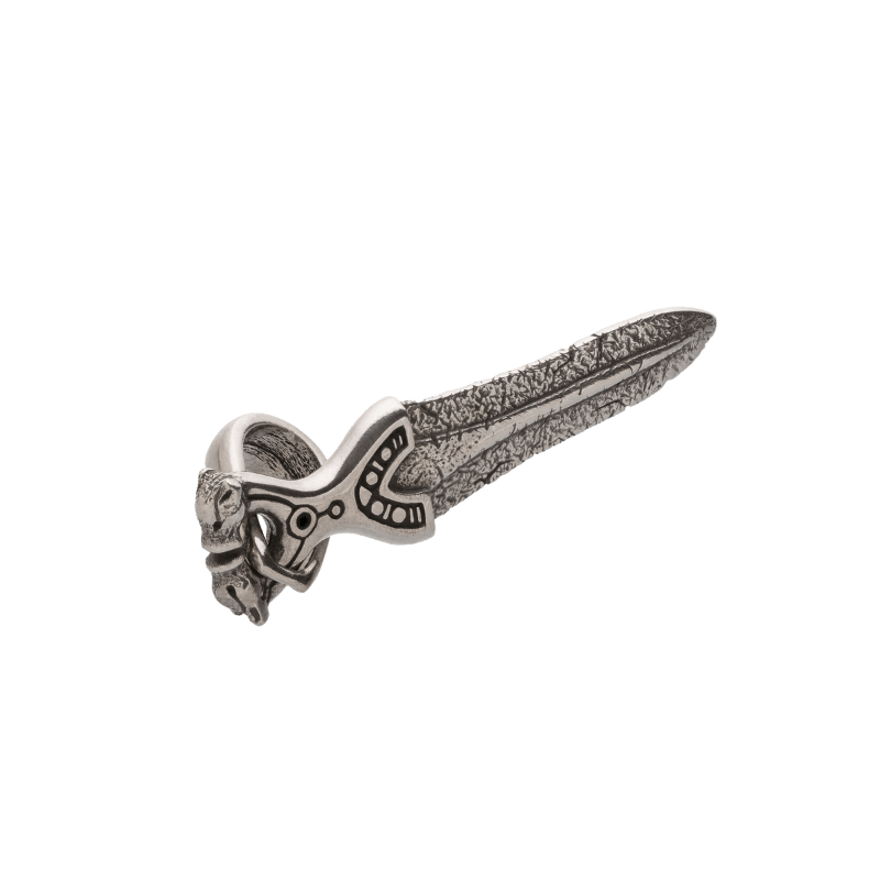 Der sorgfältig aus Feinsilber gefertigte Anhänger zeigt ein Wikingerschwert mit Bärenkopfmotiven, das die Verbindung des Berserkers zum Bären symbolisiert.