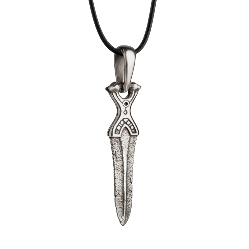 Davon inspiriert fängt unser handgefertigter Berserker-Anhänger „Dolch mit Bärenköpfen“ die Essenz des Berserker-Geistes ein. Es ist nicht nur ein Schmuckstück, sondern eine Hommage an den unbezwingbaren Willen und die Stärke, die die Seele der Wikinger ausmachen.