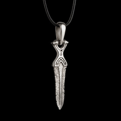 Handgefertigter Dolch mit Bärenköpfen und Berserker-Anhänger – Wikinger-Schwert-Silberhalskette