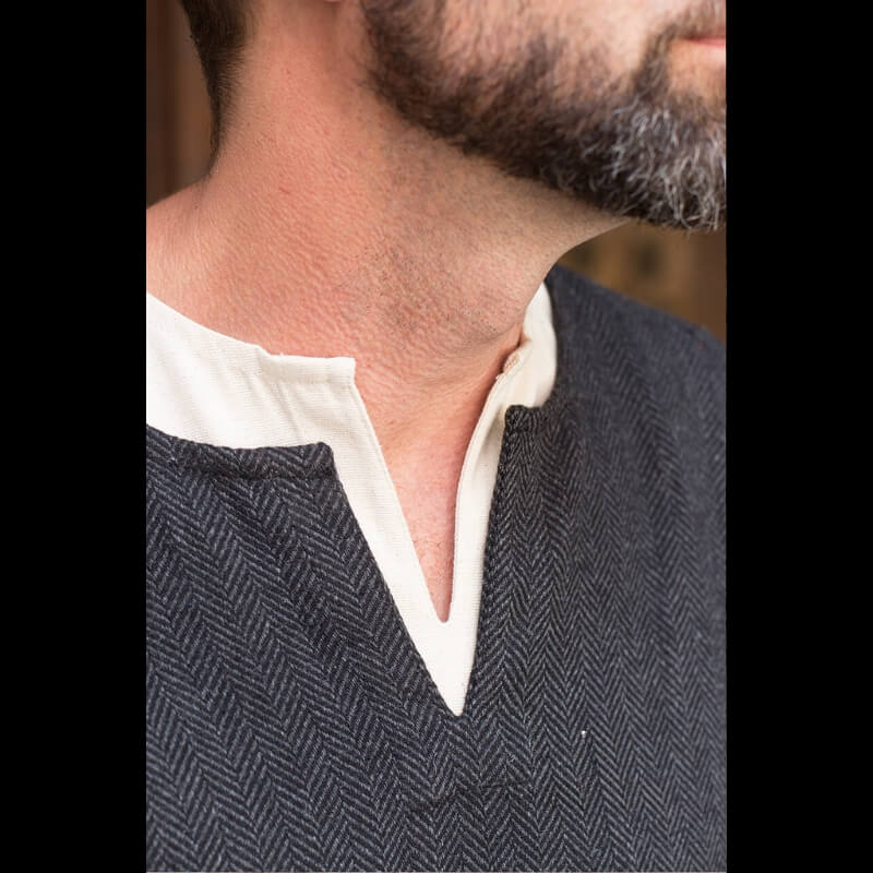 Die Herringbone Woven Tunic Tyr ist nicht nur ein Kleidungsstück; Es ist eine Anspielung auf die komplizierte Handwerkskunst und die geschichtsträchtige Vergangenheit der Wikinger. Mit ihrem authentischen Fischgrätmuster ist diese Tunika eine Hommage an Tyr, den nordischen Gott des Krieges und der Gerechtigkeit, und verkörpert seine Stärke, Ehre und seinen unerschütterlichen Mut.