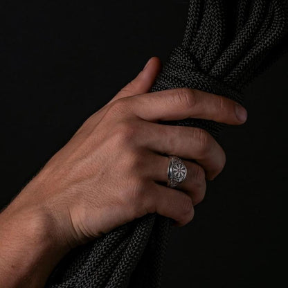 Dieser Ring ist eine Hommage an die Dualität der Wikinger: ihre Tapferkeit im Kampf und ihren klugen strategischen Verstand. Lassen Sie es ein Symbol für Ihren eigenen Mut und Ihre List in der Odyssee des Lebens sein.