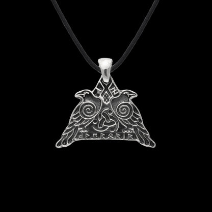 Handgefertigter Huginn und Muninn Odins Raben-Amulett-Anhänger aus Sterlingsilber
