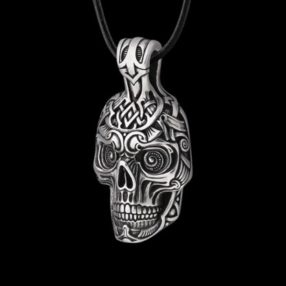 Der Schädel war schon immer ein starkes Symbol in der Wikingerkultur und repräsentiert die Zerbrechlichkeit des Lebens und die Ehre von Kriegern, die dem Tod ohne Angst entgegentraten. Dieser große handgefertigte Totenkopfanhänger aus Sterlingsilber strahlt die gleiche Stärke und den gleichen Trotz im Angesicht des Schicksals aus.