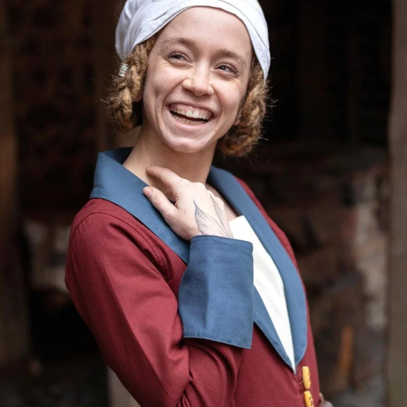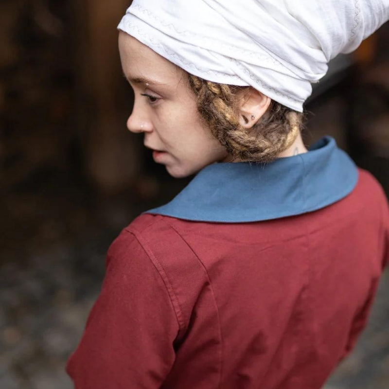 Dieses Kleid erinnert an Geschichten aus Sagen, in denen Frauen stolz und edel waren und selbst in den turbulentesten Zeiten einen Hauch von Raffinesse verliehen. Mit seinen umgeschlagenen Ärmeln und dem eckigen Reversausschnitt erinnert das Loretta-Überkleid an die Kleidungsstile, die in den großen Wikingerhallen zu sehen waren.