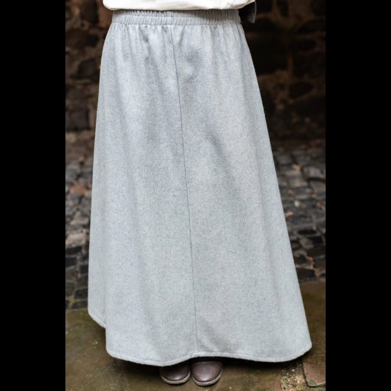 Der Unterrock Wolle Cyria Grey bietet eine zeitlose Schlichtheit, die die Essenz mittelalterlicher Mode ergänzt. Aus warmem Wollfilz gefertigt, ist es die perfekte Wahl für kühle Tage und verkörpert sowohl Komfort als auch Funktionalität. Der weiche elastische Bund sorgt für eine mühelose Passform, sodass sich der Rock problemlos an Ihre Silhouette anpasst.