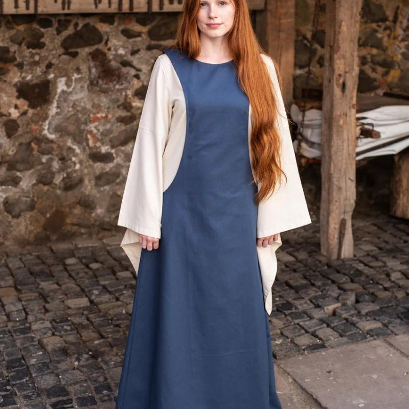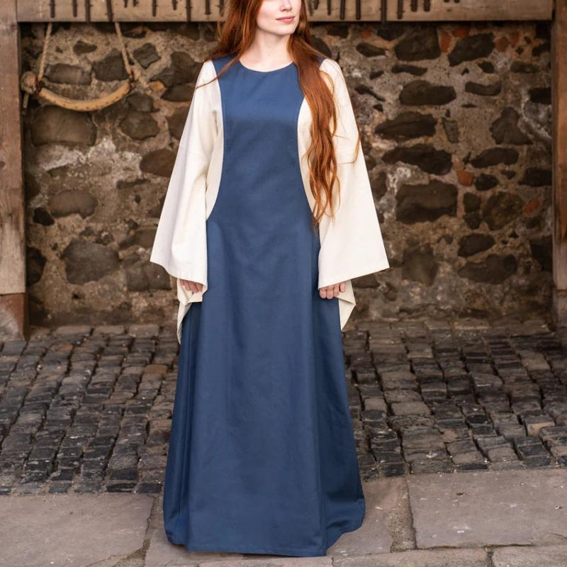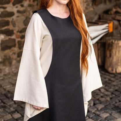 Dieser aus grob strukturiertem und dennoch bequemem Wollstoff gefertigte Surcot verleiht jedem Ensemble einen authentischen mittelalterlichen Look. Traditionell wird die Surcot Isabella über einer Cotte, einer weiten Untertunika für Männer und Frauen, getragen. Sie bleibt ihren Wurzeln treu und bietet gleichzeitig ein vielseitiges Kleidungsstück für den modernen Gebrauch.