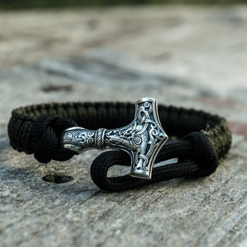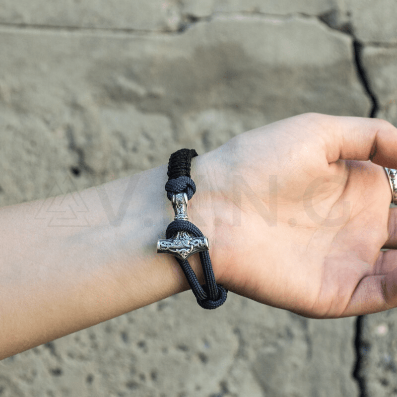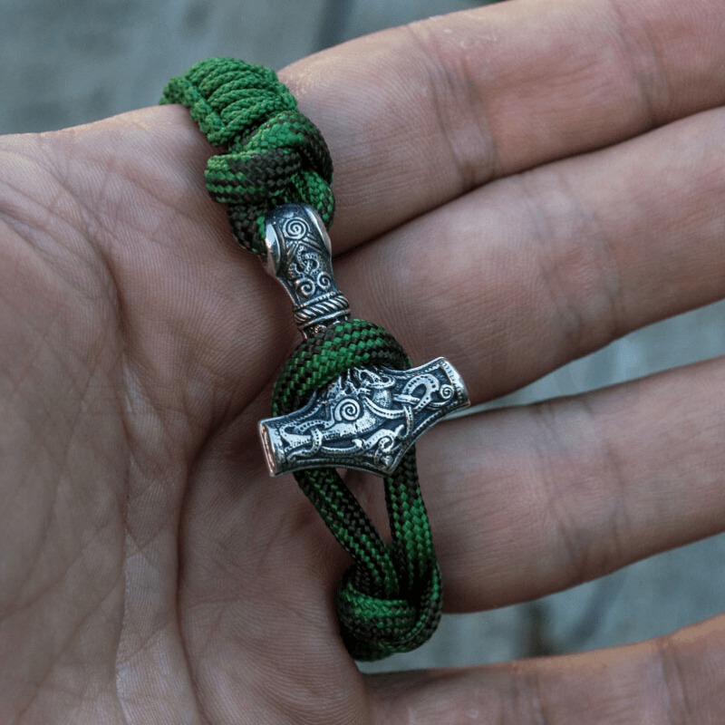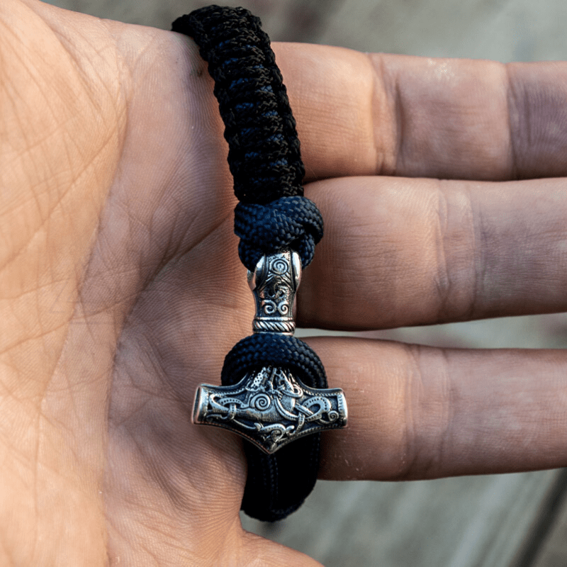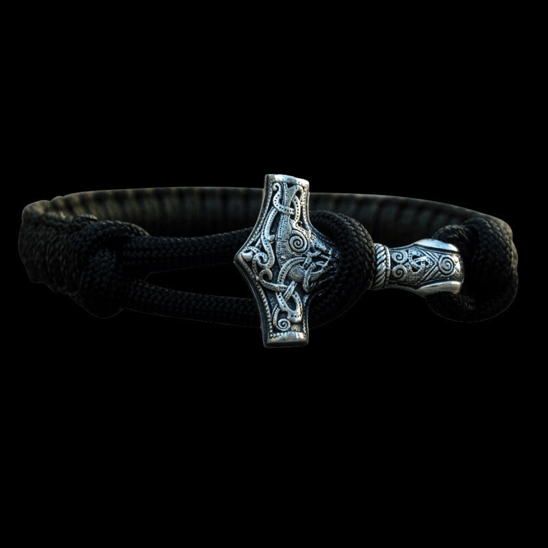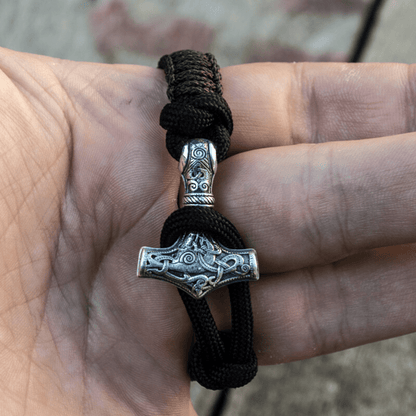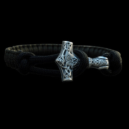 Handgefertigtes Thorshammer-Paracord-Armband aus Sterlingsilber