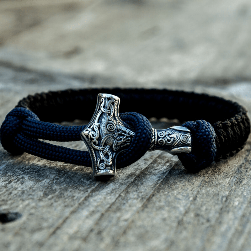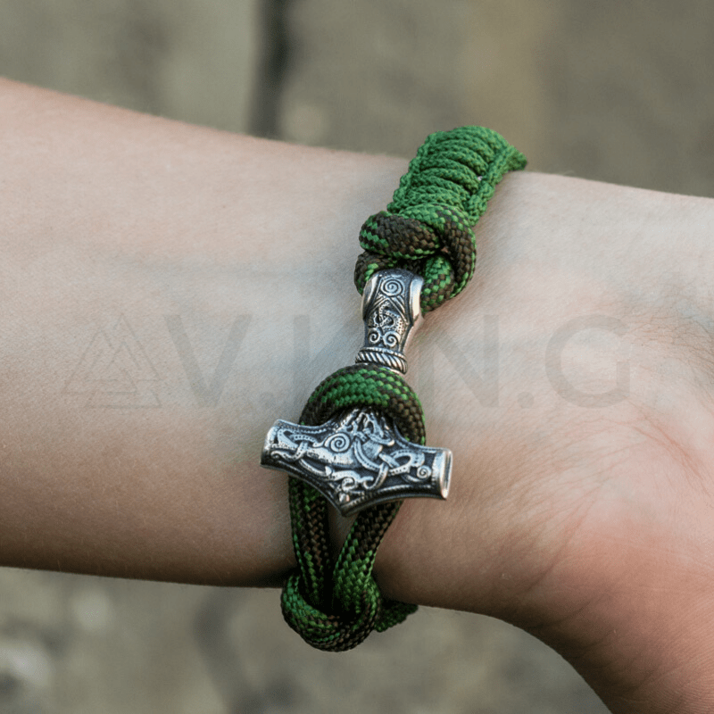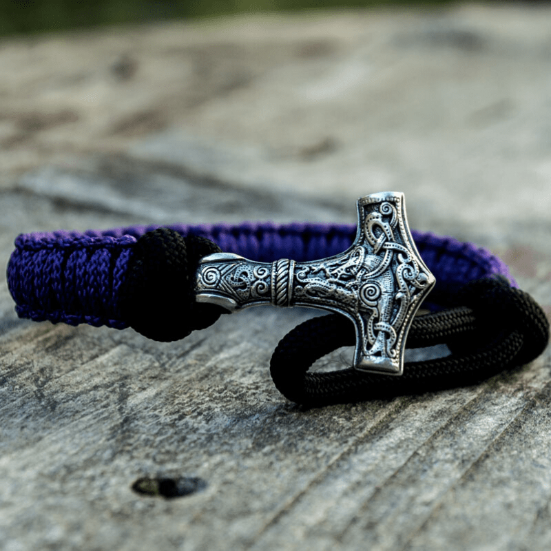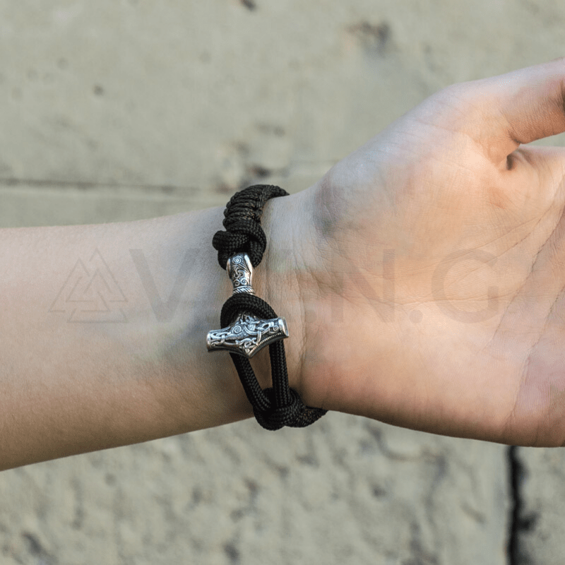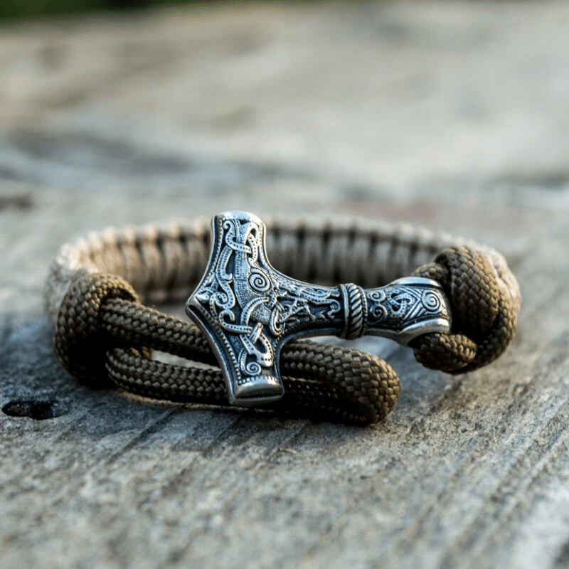 Handgefertigtes Thorshammer-Paracord-Armband aus Sterlingsilber