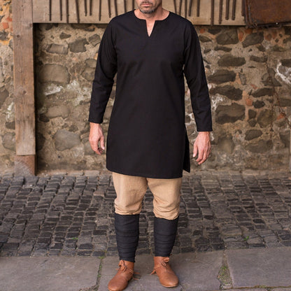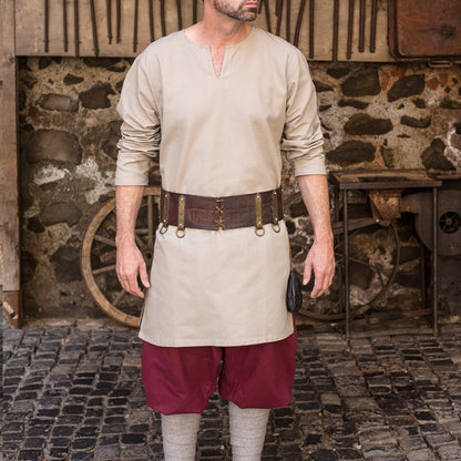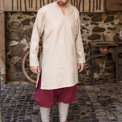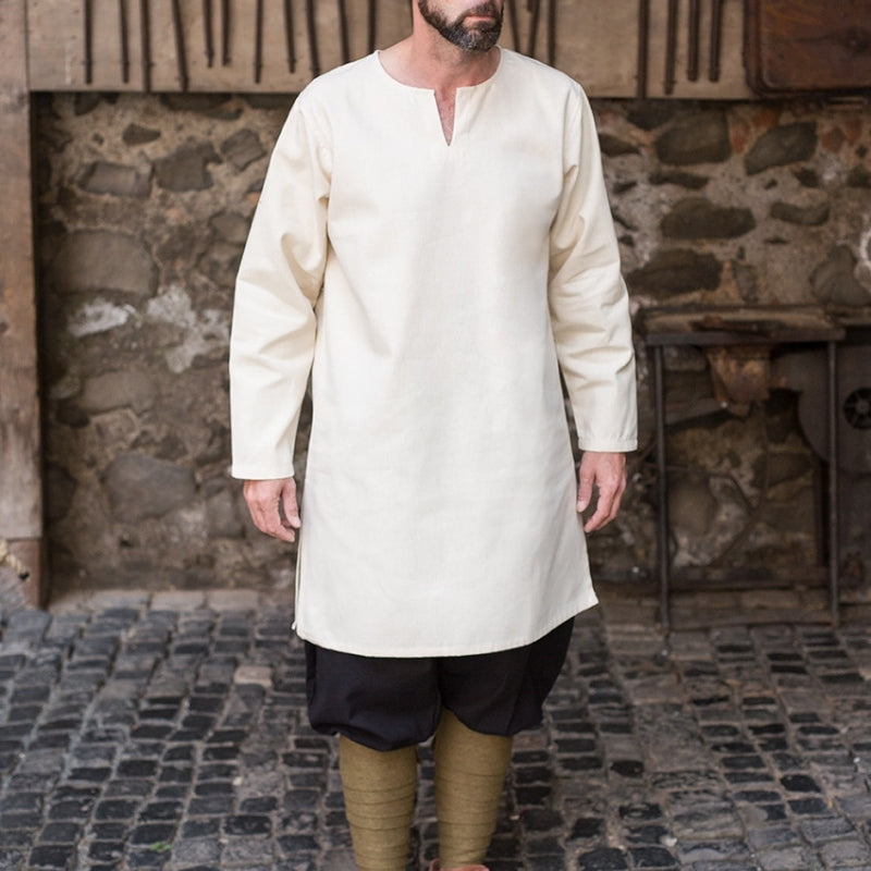 Die Untertunika Leif soll die subtile Eleganz der Wikingerkleidung in die moderne Garderobe bringen. Inspiriert von der Kleidung der Nordmänner, vom einfachen Bauern bis zum beeindruckenden Krieger, dient es als vielseitige Basis für jedes historische Outfit.