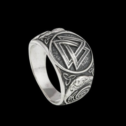 Handgefertigter Valknut Ancient Ravens Seitenring aus Sterlingsilber