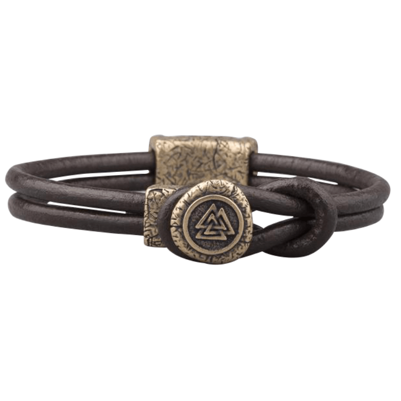 Handgefertigtes Valknut-Lederarmband aus Bronze